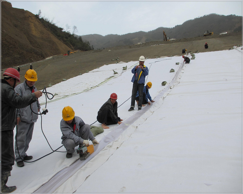 土工布作為土工膜的保護層,使保護防滲層不受損壞。為減少紫外線照射,增加抗老化性能,最好采用埋入法鋪設。